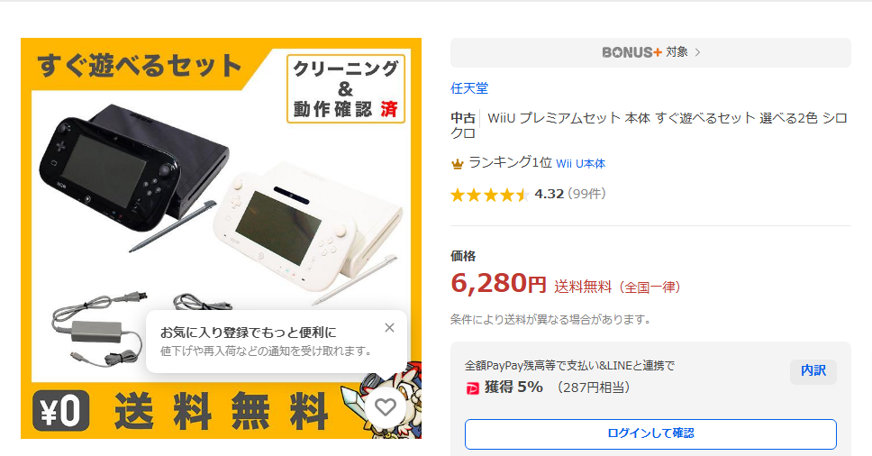 任天堂 中古WiiU プレミアムセット 本體 すぐ遊べるセット 選べる2色 シロ クロ ランキン